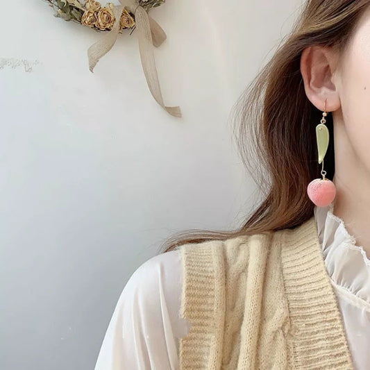 Realistic Fuzzy Peach Earrings Dangle Drop juicy fruit soft kawaii Jewelry