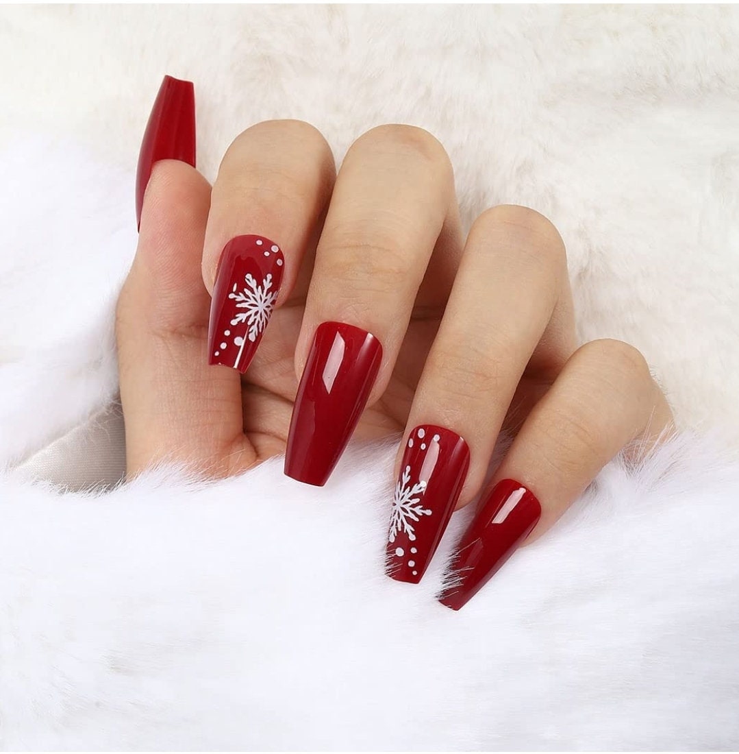 Pierce the center of glue bottle tip with pin or snip with scissors to open. Christmas Press on nails are affordable, trendy, fashionable, and easy to wear. The DIY trend has been around for decades now. They can help you to cut back on your nail spending. Most people that use press-on nails don’t set foot in a nail salon for months. However, with the right glam finish, you will think they have spent a fortune to get their nails done. Interestingly, it does not take long to master the act! Do Christmas Press on nails Have Any Benefits? Christmas Press on nails have a myriad of benefits over acrylic nails— part of the reason why they are becoming increasingly popular.. They are highly affordable. The price for a set can range from somewhere around $9 at to about $30. Once you’ve mastered the art, it only takes a few minutes to prepare your natural nails and apply the artificial nails. Removal is easier with press-ons versus acrylics, also less damaging to your nail beds! The combination of low cost and variety makes it easier for you to flaunt multiple nail designs within a short period Steps on How to Apply Press-On Nails The healthier your natural nails, the longer your press-on nails are likely to last. Therefore, it is important to rev up your hand hygiene. Everything you’ll need will be included in the kit. The kit will have nail glue, buffer, and nails. 1. Find your match You need to take out the false nails from the nail set and size them up on your fingers to find the ones that fit for each fingernail. Line them up on the table or surface in front of you in such a way that you can easily tell which of the falsies is going to go for each finger. 2. Prepare your falsies Apparently, some of the press on nails may not perfectly fit some of your fingers. When this happens, simply use your buffer and file them to shape. You can also use the buffer to get them to a desirable length. 3. Prepare your fingernails Preparing your fingernails involves washing them thoroughly and drying them on a clean towel. Get rid of any residual polish. Use a metal pusher to push back your cuticles. Follow this up with a cuticle nipper to clip any overhangs. 4. File your natural nail Most of the tutorials will tell you to buff the surface of the nail. This will create a slightly coarse surface that helps the false nail better adhere to your natural nails 5. Apply the glue and press on nail Lastly, make sure you apply the glue to both the nails and your finger. Once you place the falsie on your fingernail, press it down for 30 seconds to a minute so that it sticks properly. It is always a good idea to start with the pinkie and work your way up to the thumb. To remove- Soak in warm soapy water for 10 minutes or until glue weakens and gently pry them off. You can add acetone to the water to help dissolve the glue. Buyers are responsible for providing the correct address at time of payment