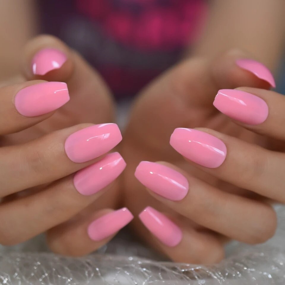 24 PCS Long Press-On Nails – Medium Coffin Shape in Soft Pink | Glue-On Nail Kit for Spring & Easter