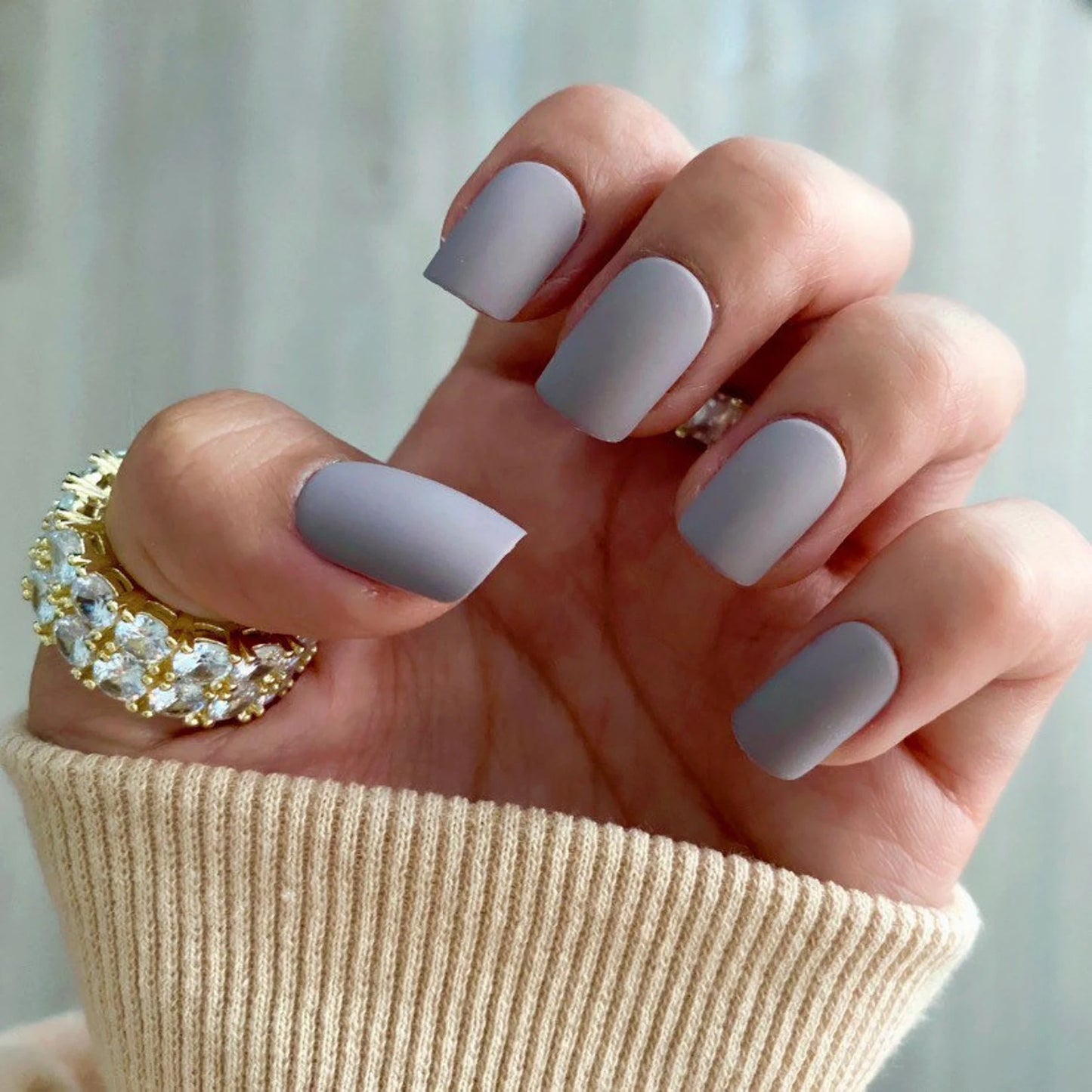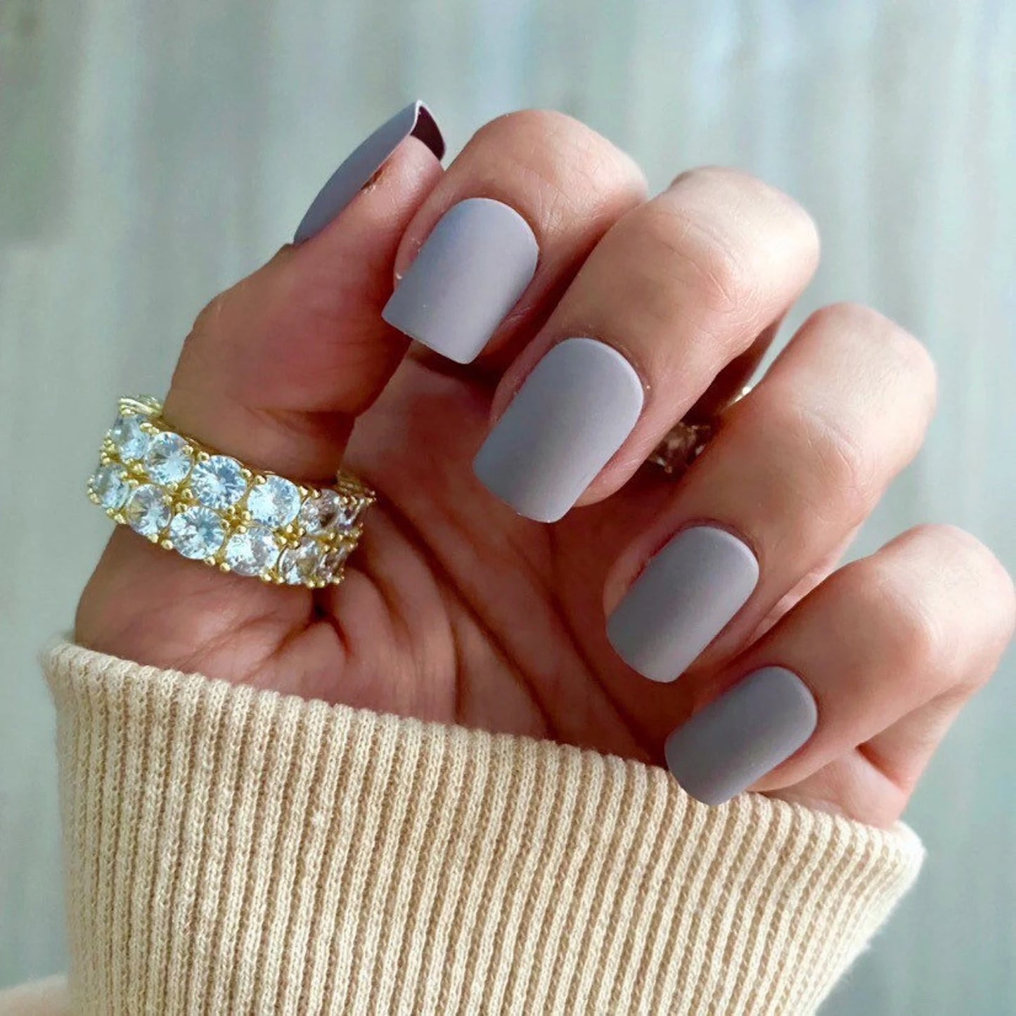24 Matte Grey Short Press on nails kit glue on gray muted.
