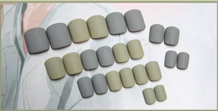 Matte Sage Green Short Press-On Nails – 24 PCS Gray Glue-On Kit.
