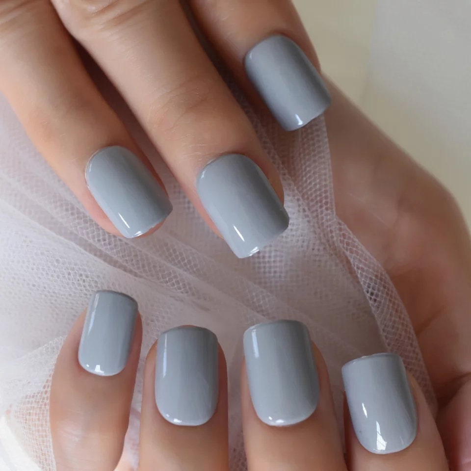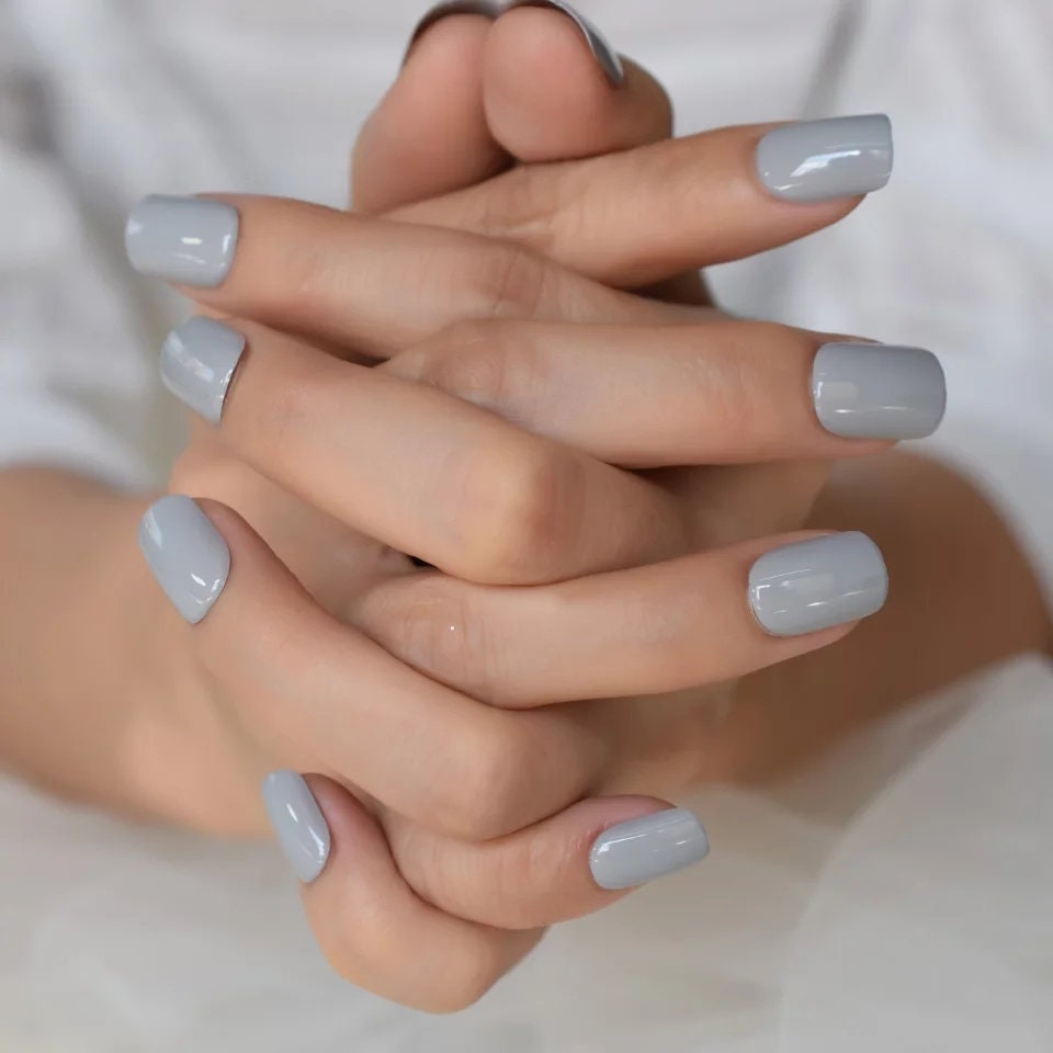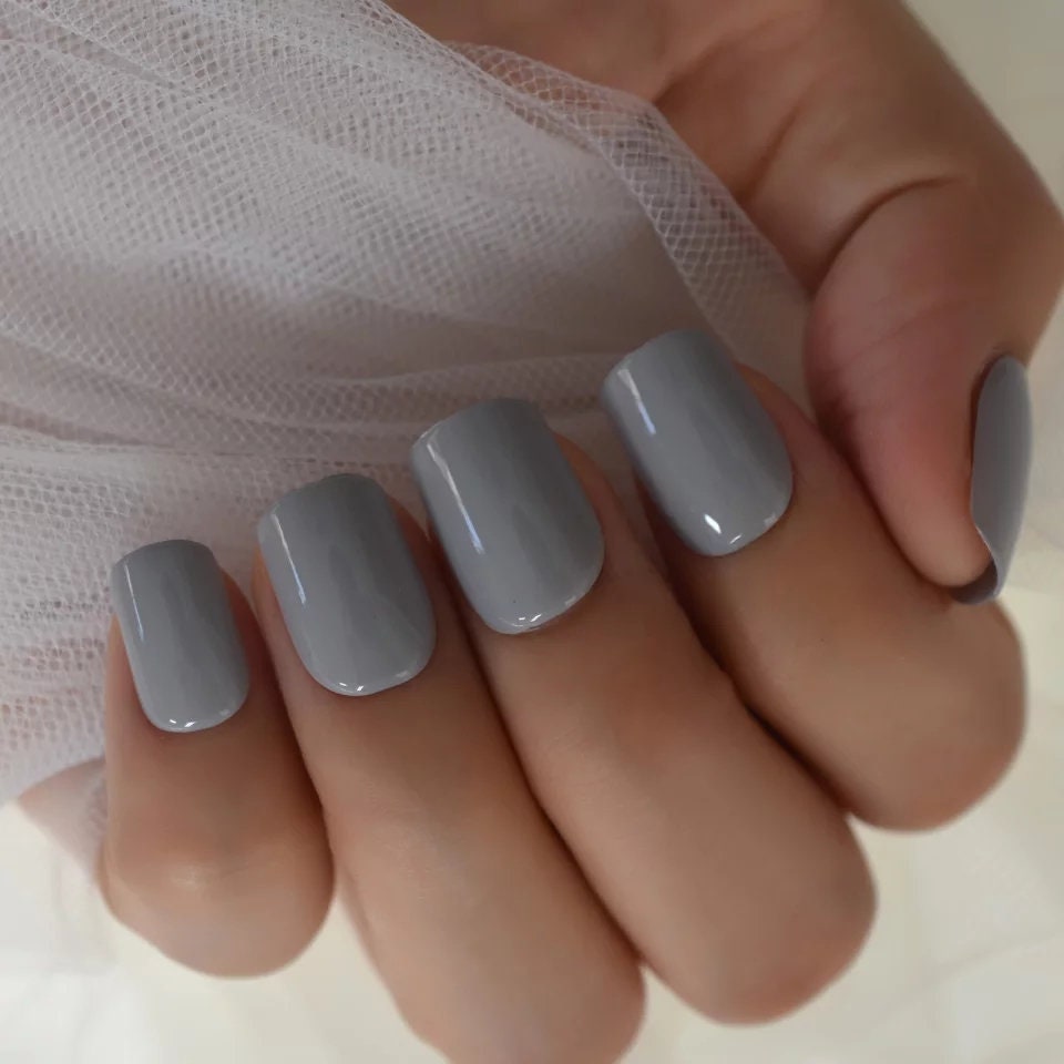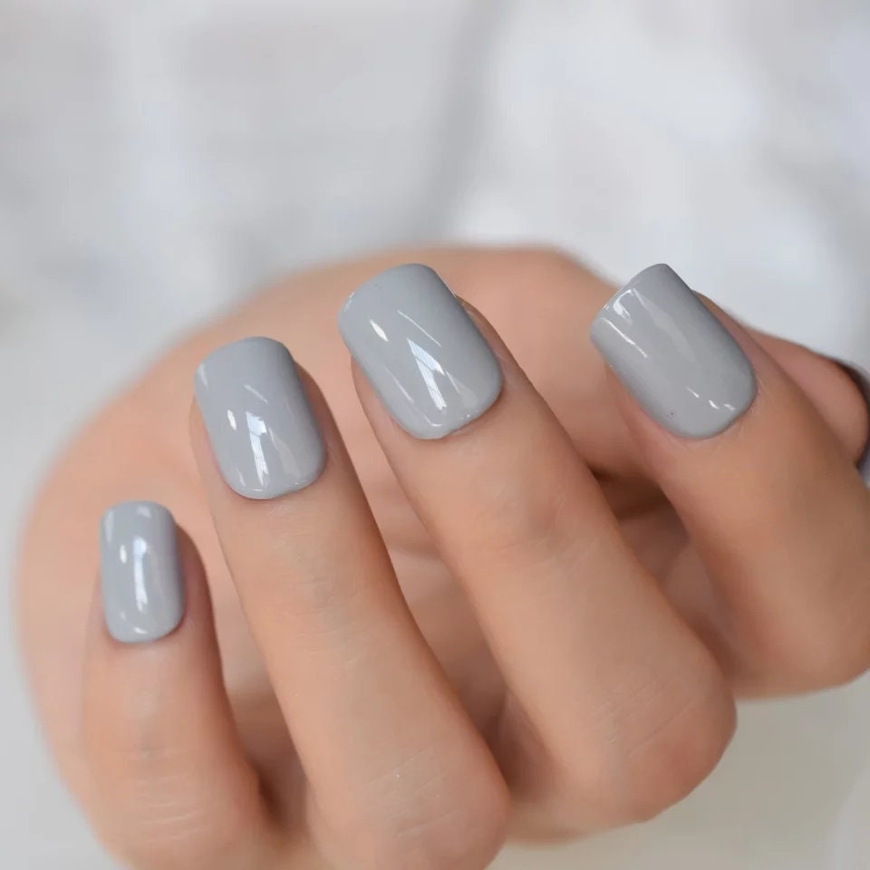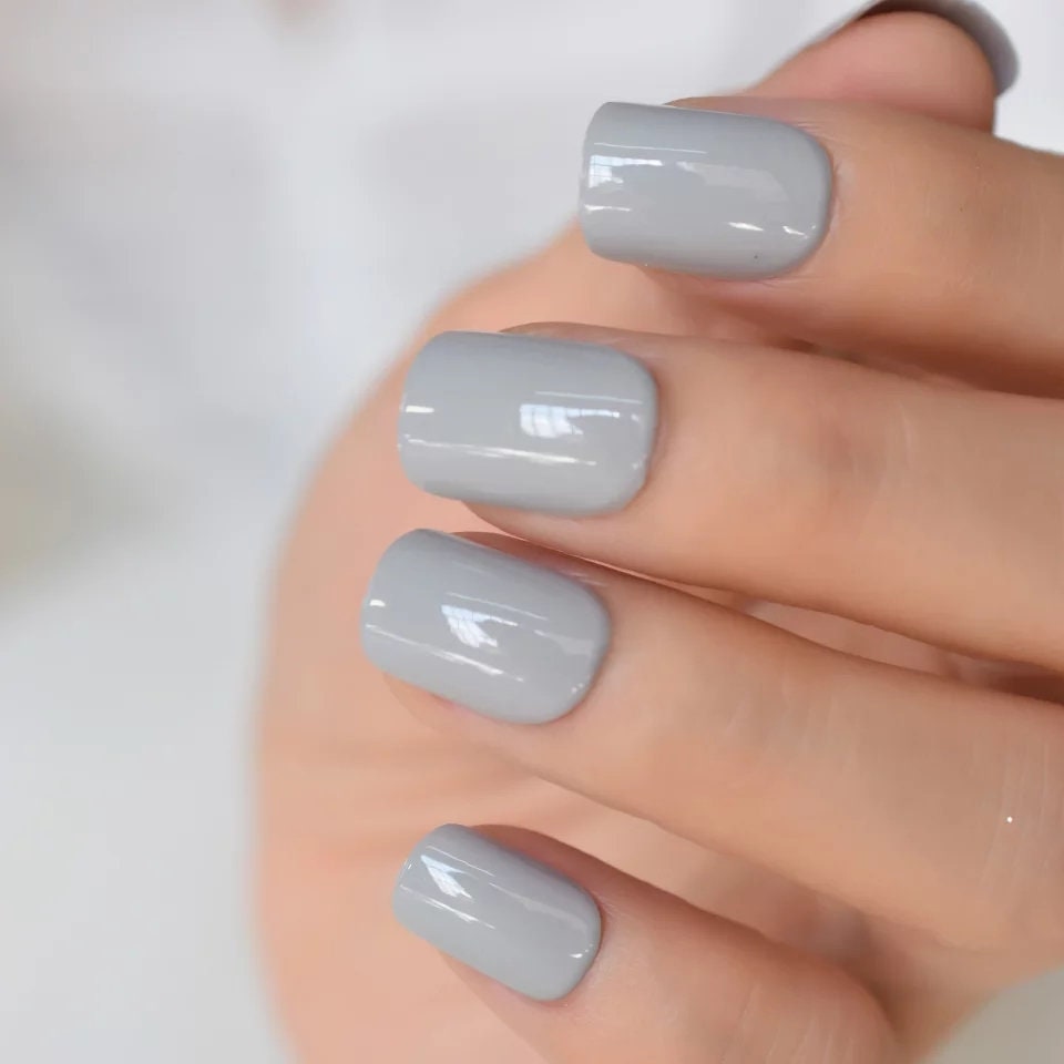 24 PCS Cool Gray Short Press-On Nails – Square Gel Finish | Glue-On, Neutral & Chic Look
