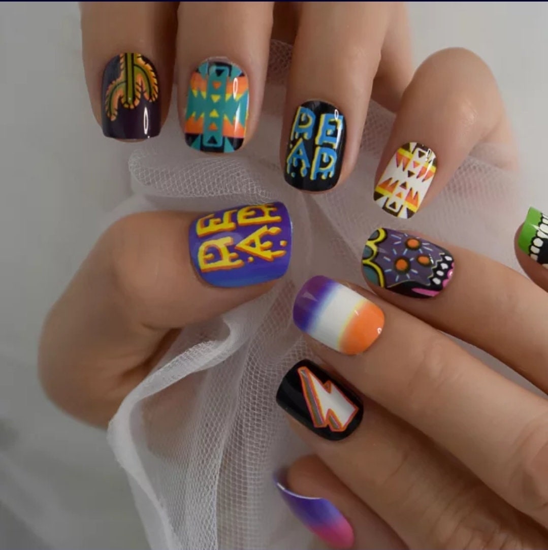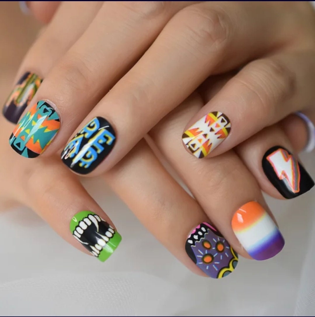 24 PCS Short Press-On Nails – Harajuku Anime Horror Art | Trendy Glue-On Set