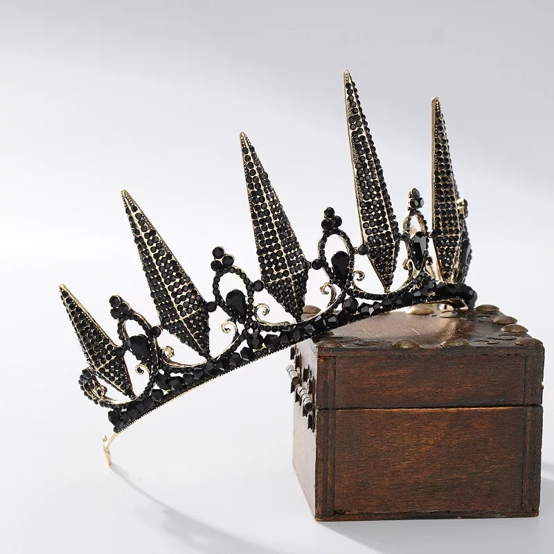 Black spike Tiara Crown Vintage Baroque Dark Goth Evil Queen tall diadem