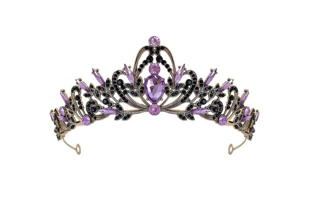 Goth Gold Purple Black Princess Tiara Queen headdress jewelry bridal real metal cosplay diadem Wedding pageant.