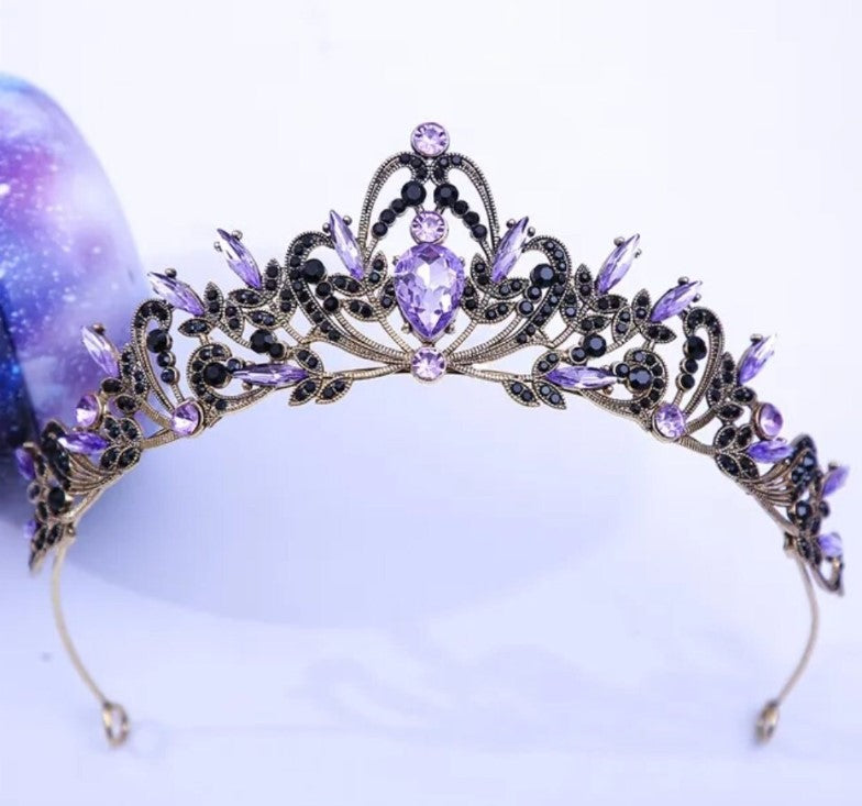 Goth Gold Purple Black Princess Tiara Queen headdress jewelry