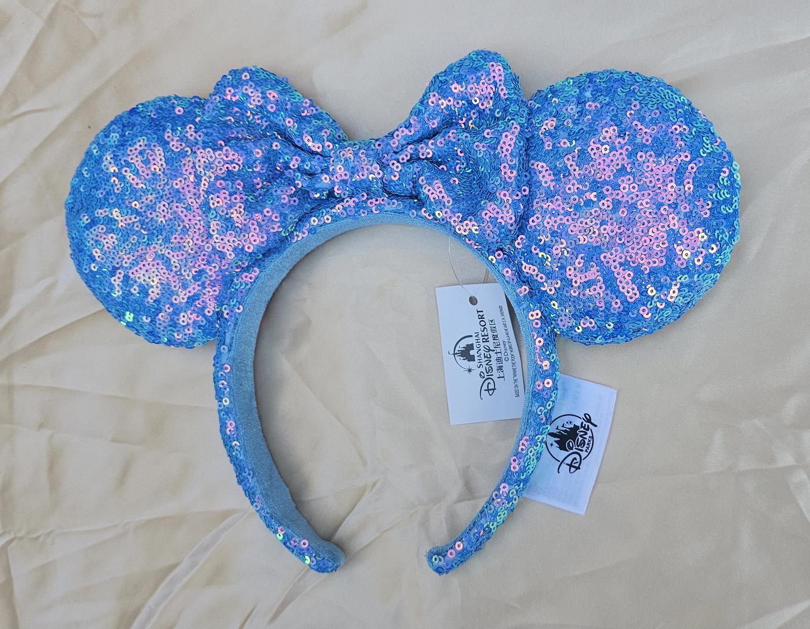 NEW Disney- Parks Aurora Blue Sequin Minnie Mickey Mouse Ears Bow Headband Gifts