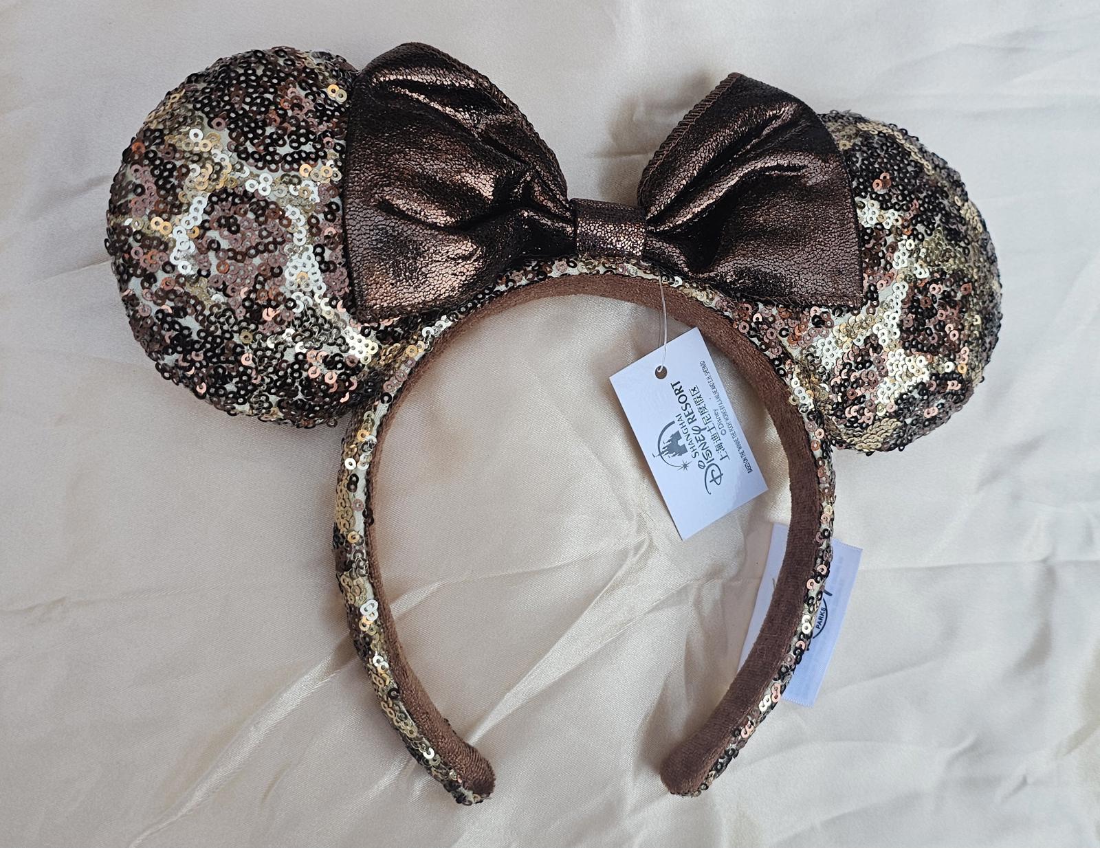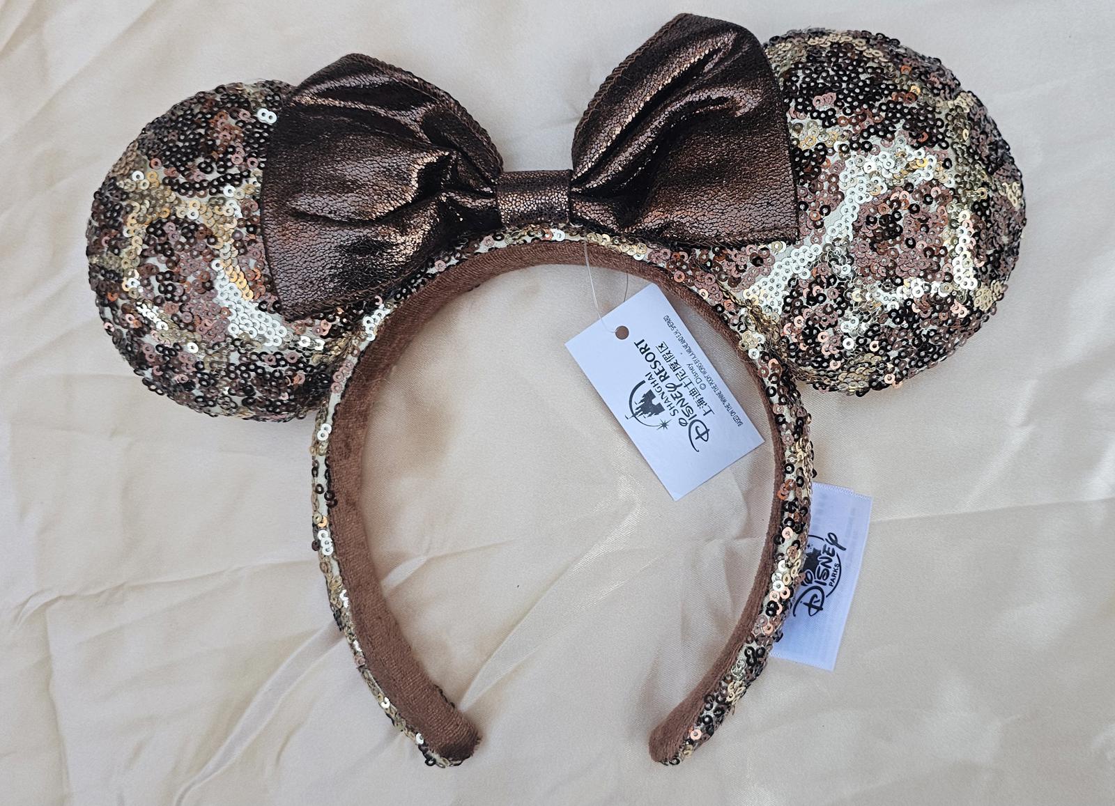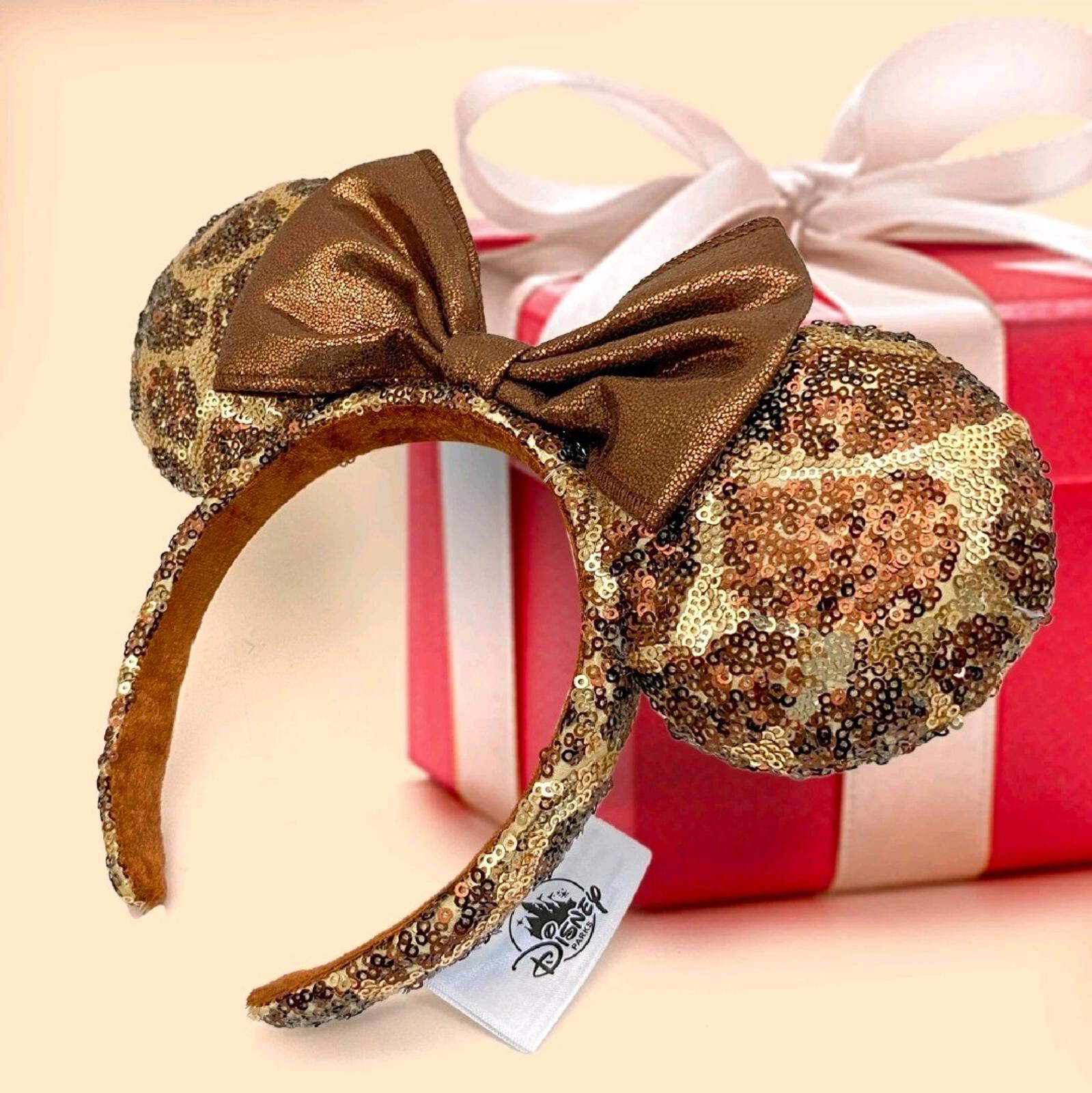 Disney Parks Giraffe Sequin Animal Print Minnie Ears Headband Bow brown tan