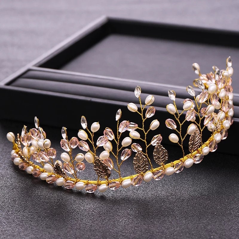 Gold Leaf Quinceañera Crown – Vine Woodland Headdress Diadem