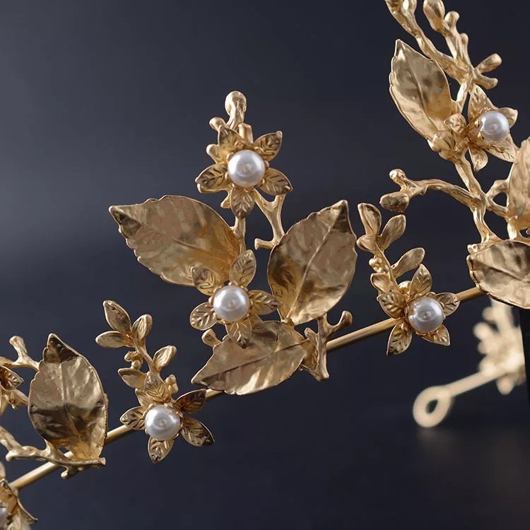Gold Quinceanera Crowns King Queen headdress vine woodland bridal Halloween cosplay