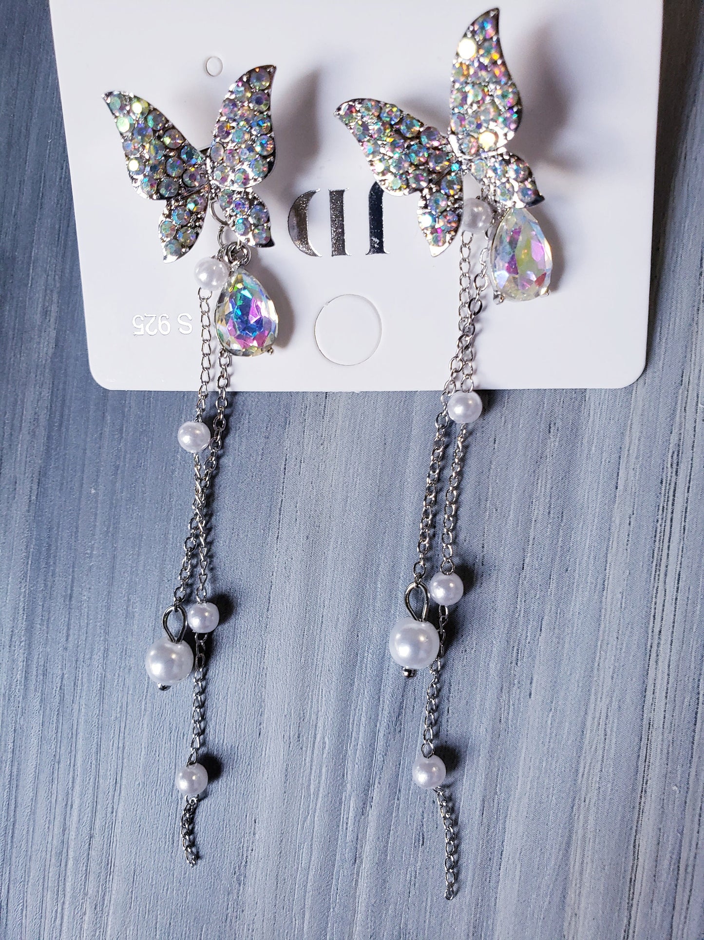 Holographic Butterfly Earrings Delicate Dangle Drop detail light beautiful sparkly Jewelry
