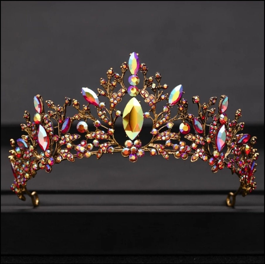 Holographic red Tiara Crown Detailed Princess Queen headdress multi color oil slick green