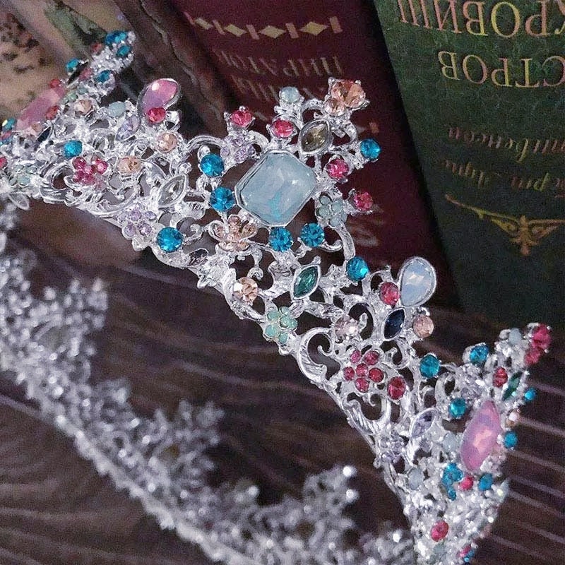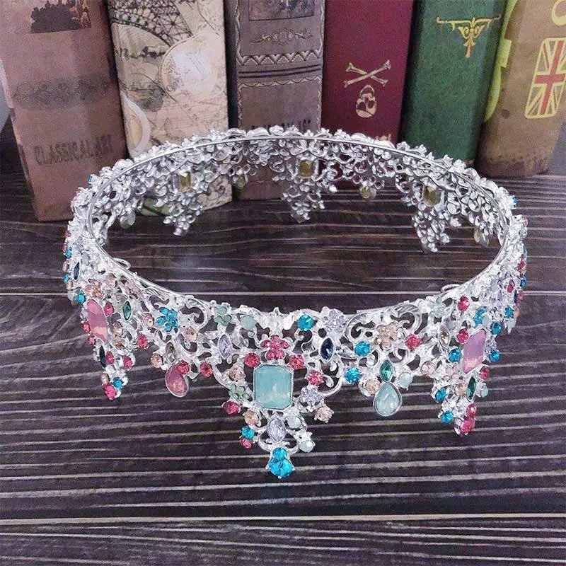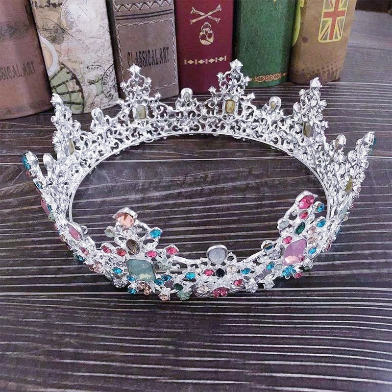 Multi Color Silver Baroque Princess Crowns Pastel Queen tall diadem headdress