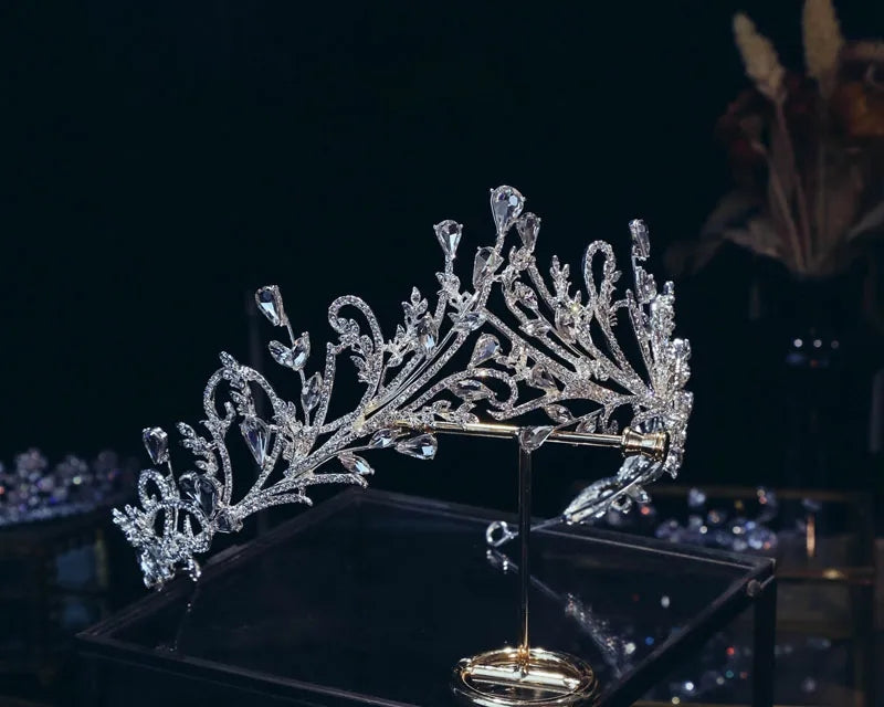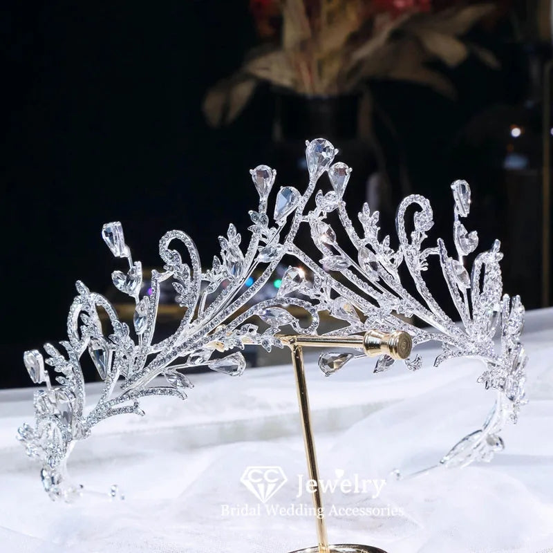 Ornate Bridal Silver crystal Tiara Crown Princess Queen headdress wedding diadem