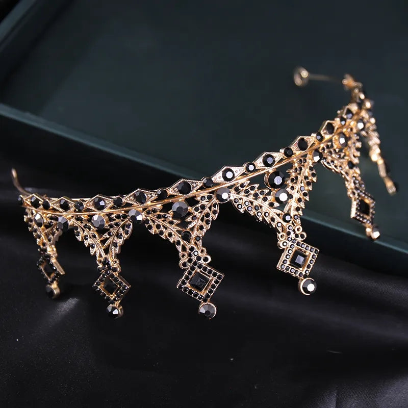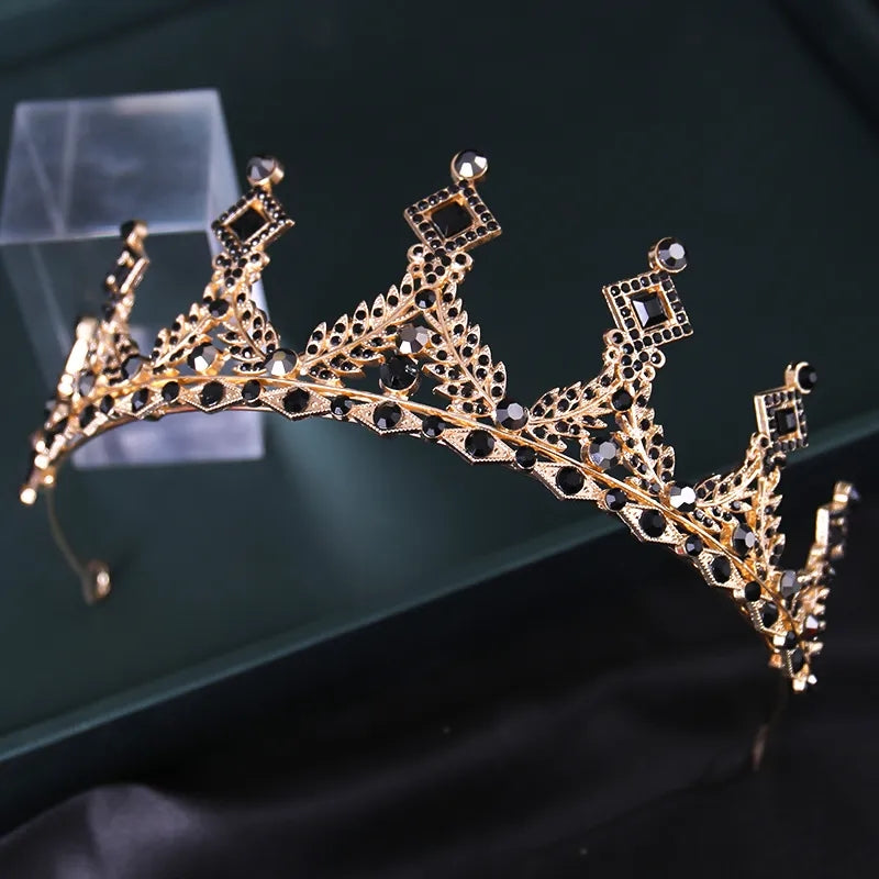 Quinceañera Crowns – Vintage Baroque Gothic Headdress in Black & Gold for Evil Queen or King