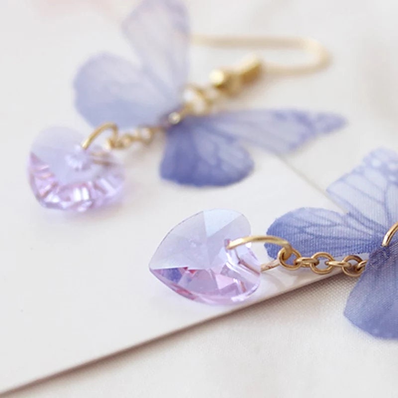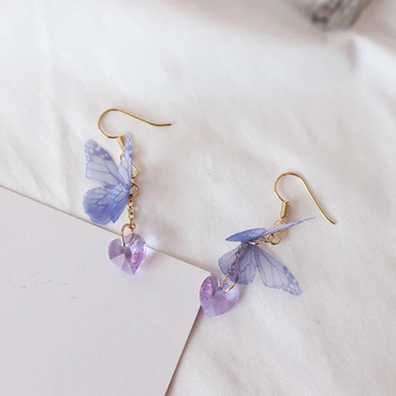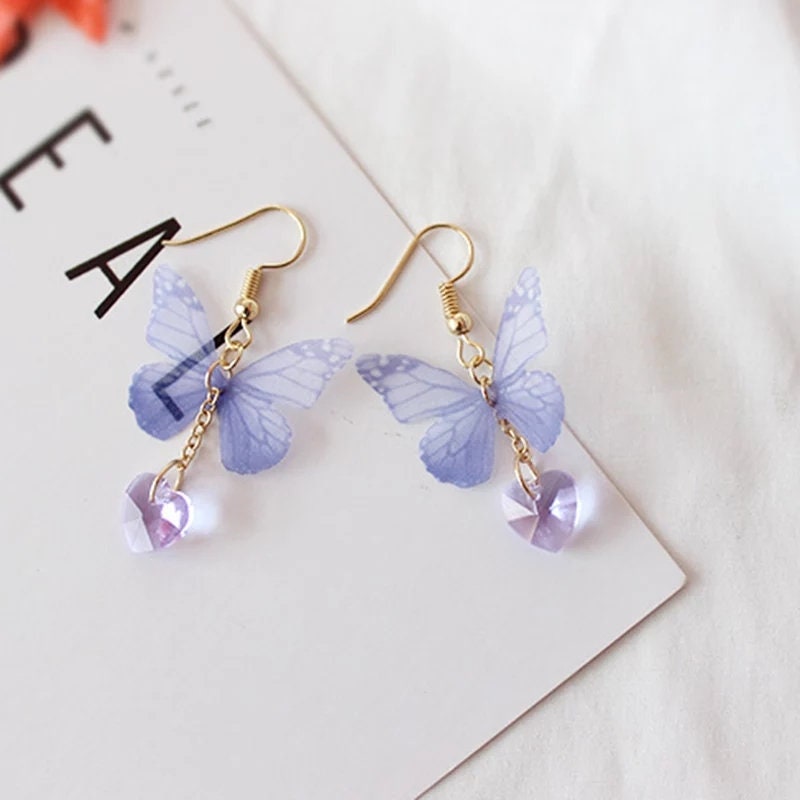 Realistic Butterfly Earrings Delicate Dangle Drop detail light beautiful Jewelry