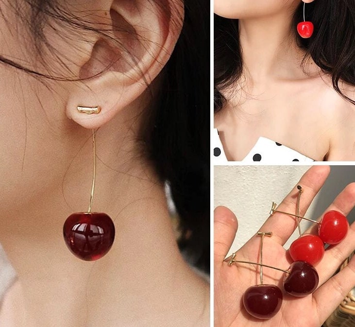 Our realistic cherry earrings are crafted with realistic red, dark, and juicy cherries that dangle delicately from the ear. Each cherry features a twist-out stem that can be screwed into the base of the cherry for secure wearing. Get free 3-5 day shipping on orders of $30 or more!