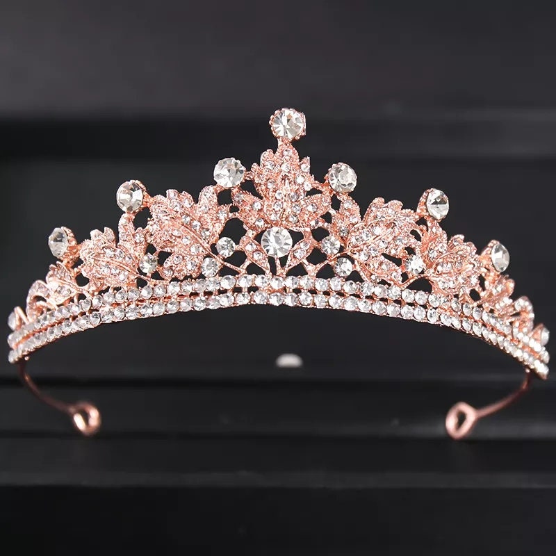 Rose Gold Small Princess Tiara – Crystal Pink Queen Headdress Crown for Bridal & Cosplay