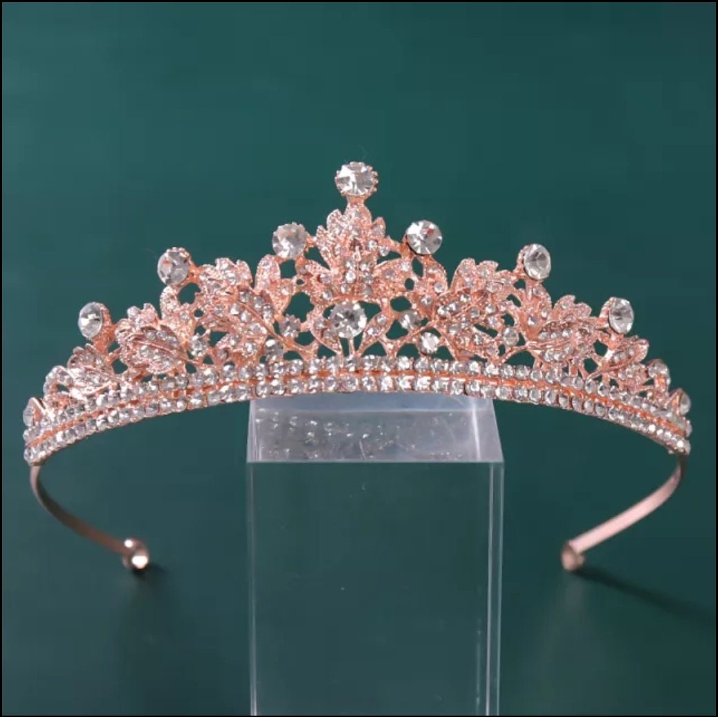 Rose Gold Small Princess Tiara – Crystal Pink Queen Headdress Crown for Bridal & Cosplay.