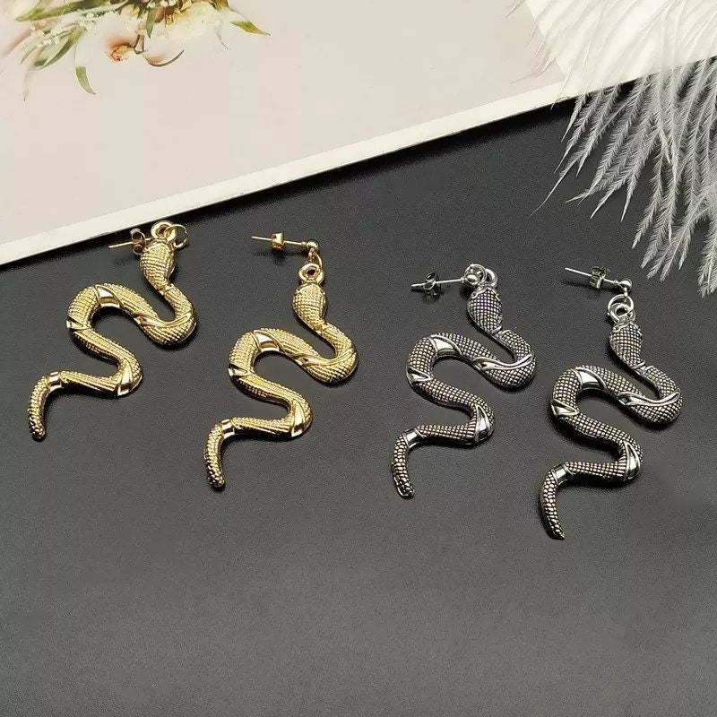 Snake earrings dangle drop snake earrings black silver gold dark chrome nice Jewelry