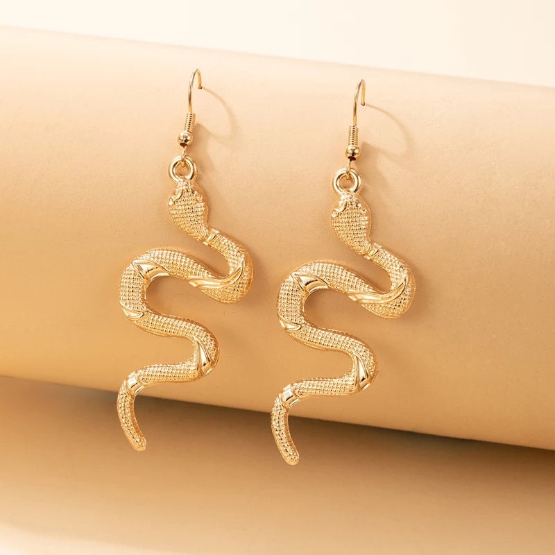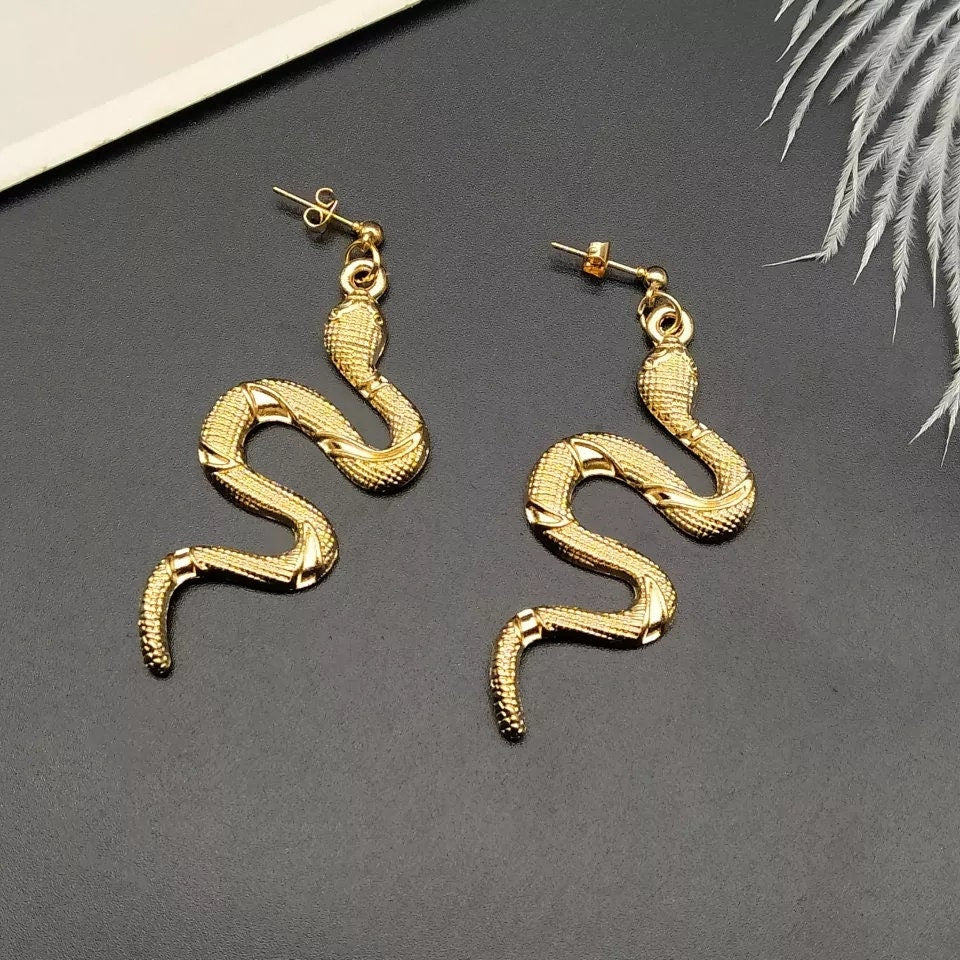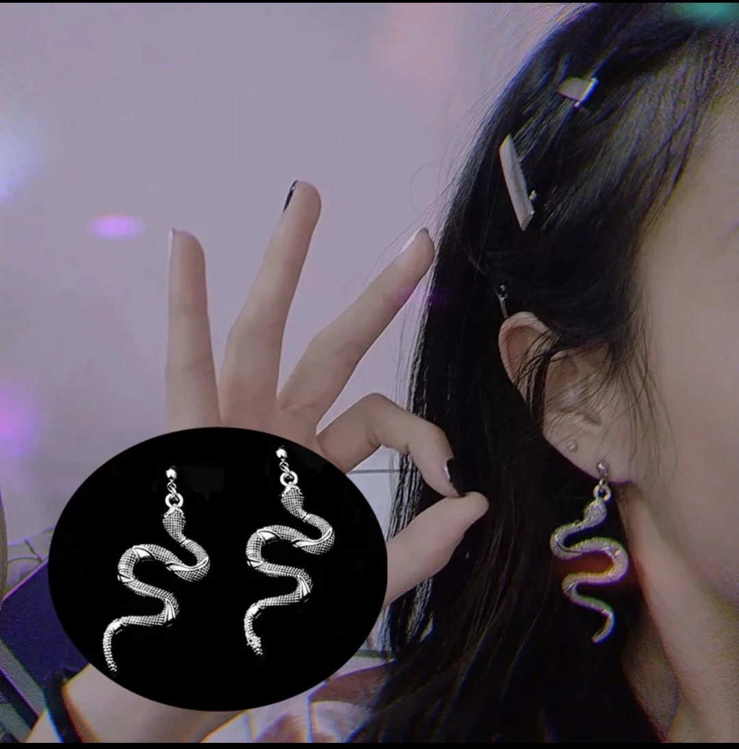 Snake earrings dangle drop snake earrings black silver gold dark chrome goth Jewelry