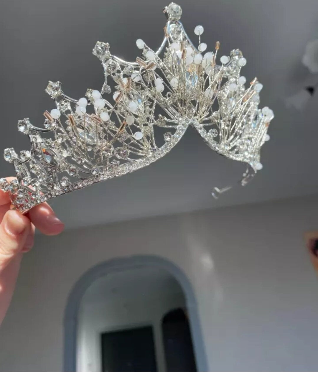Silver Crystal Princess Tiara Queen Bridal crown headdress