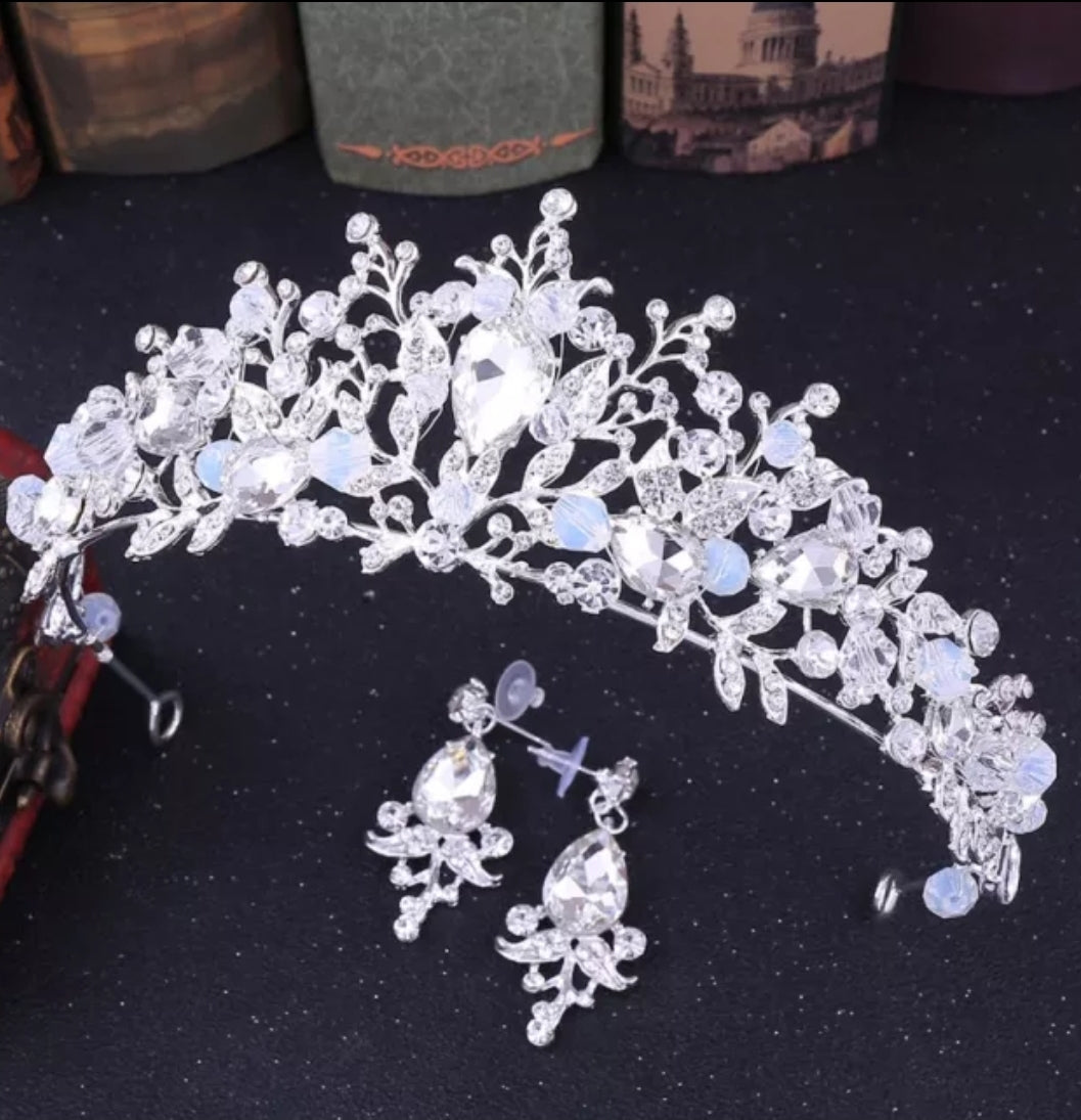 Silver & Light Blue Princess Tiara – Queen Headdress for Bridal or Cosplay