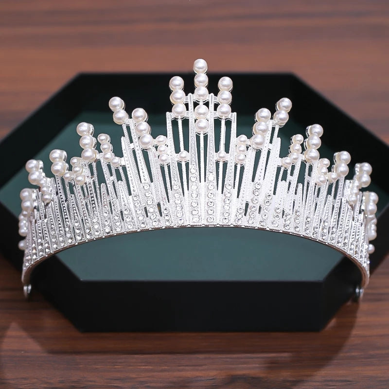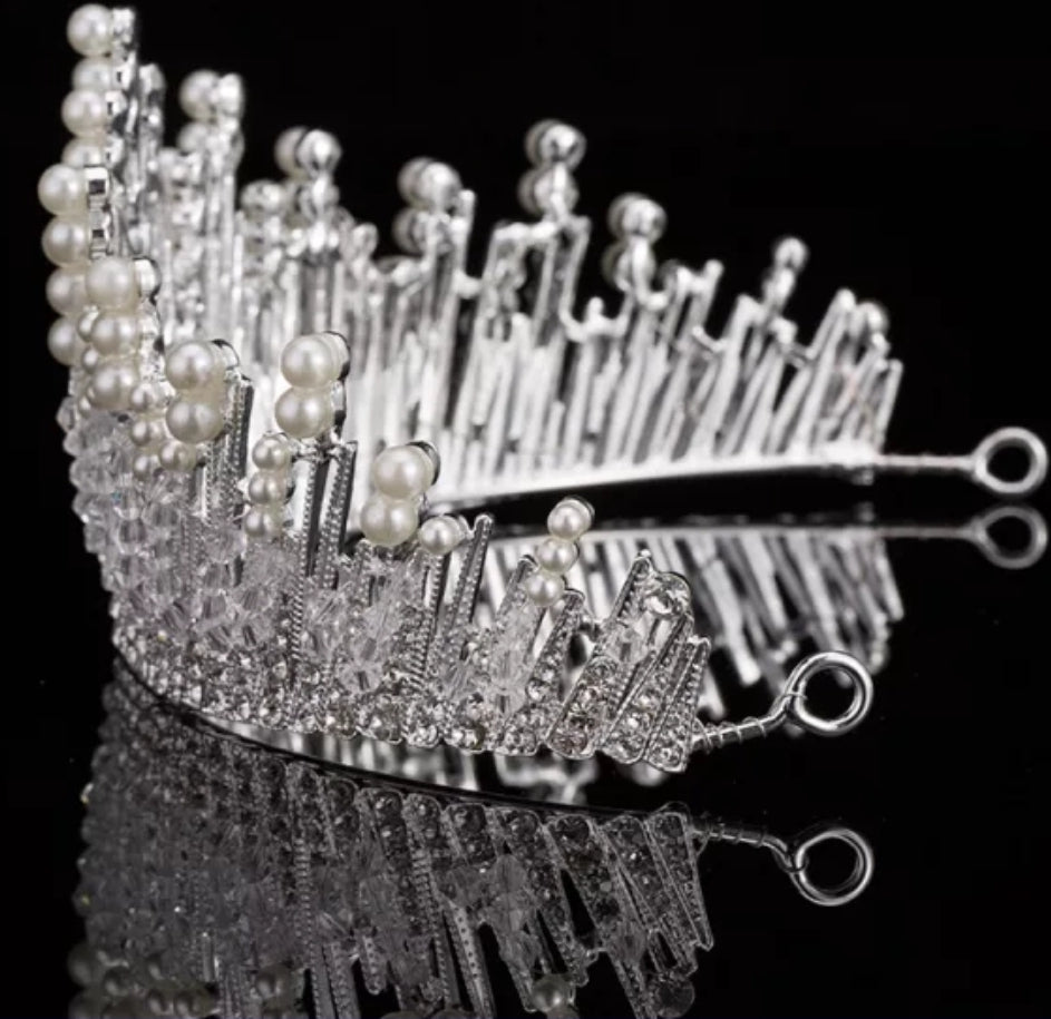 Silver & Pearl Princess Tiara – Queen Headdress or Bridal Crown