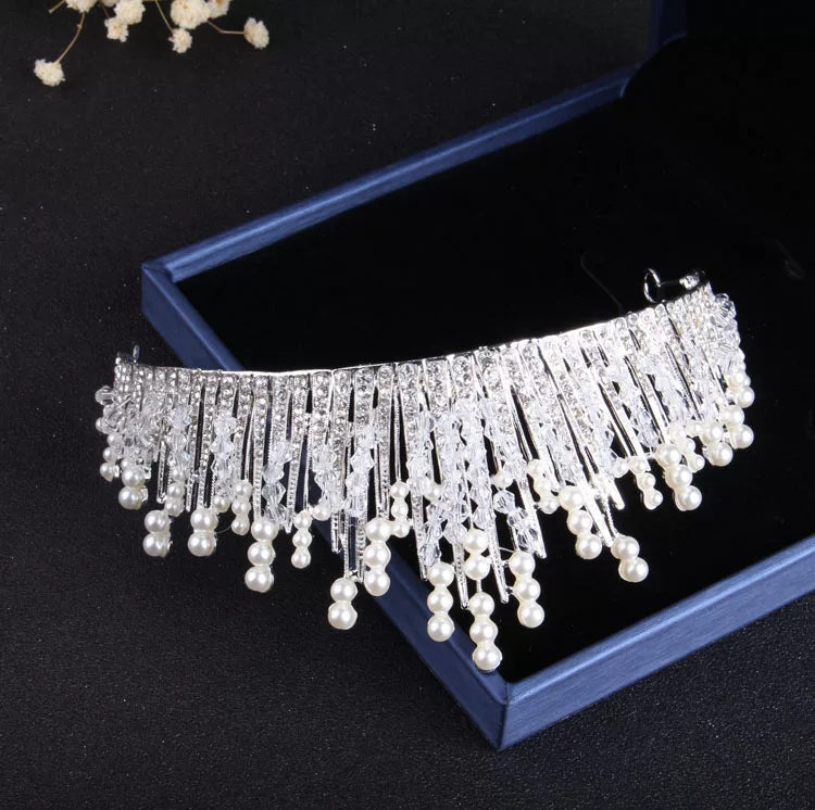 Elegant Silver and Pearl Princess Tiara for Queens & Brides.