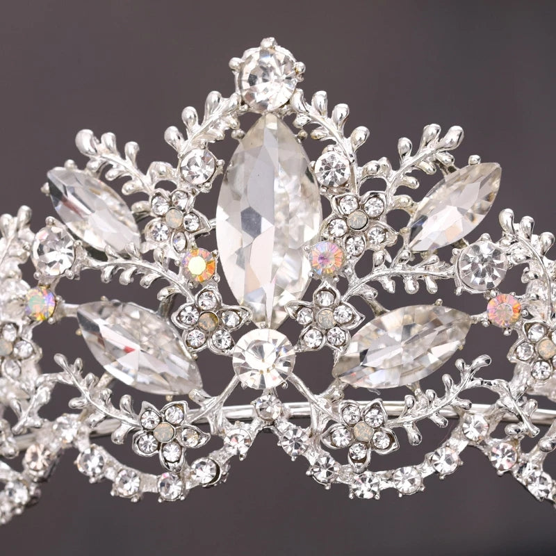 Silver Princess Tiara – Detailed Queen Headdress & Elegant Royal Jewelry
