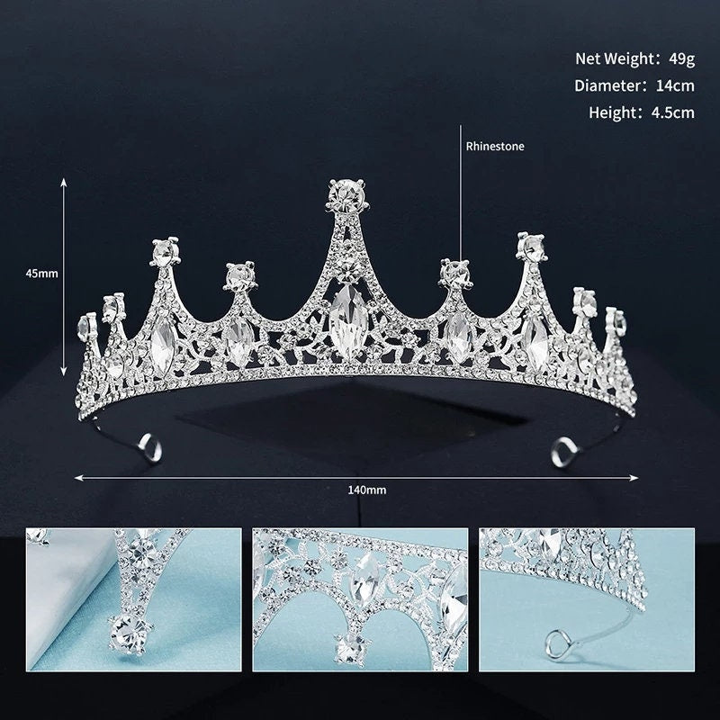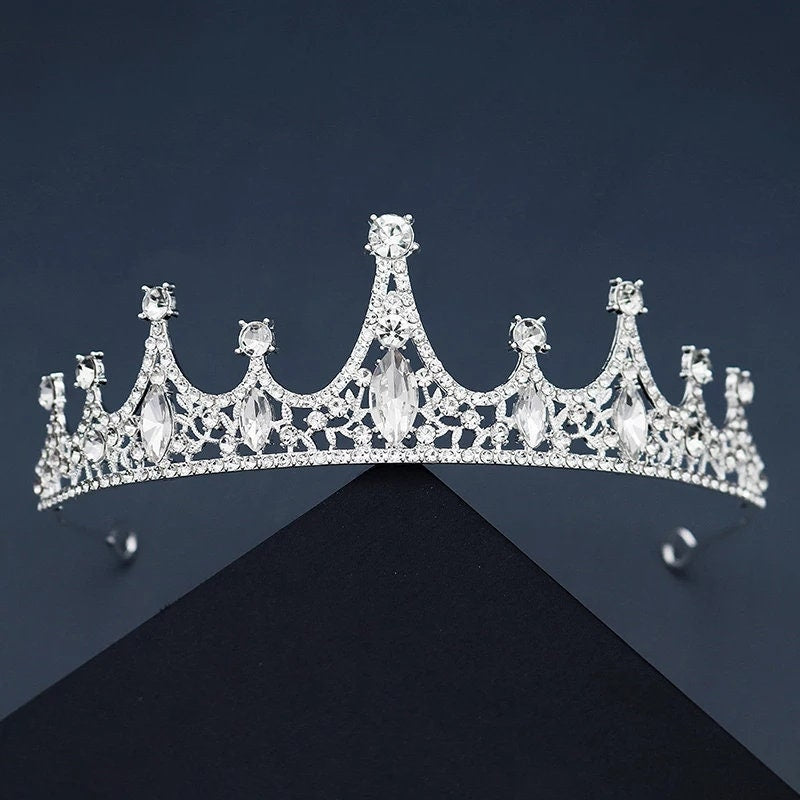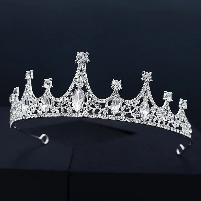 Silver Princess Tiara Queen smaller demure headdress jewelry bridal Halloween cosplay diadem spike Wedding pageant royalty.