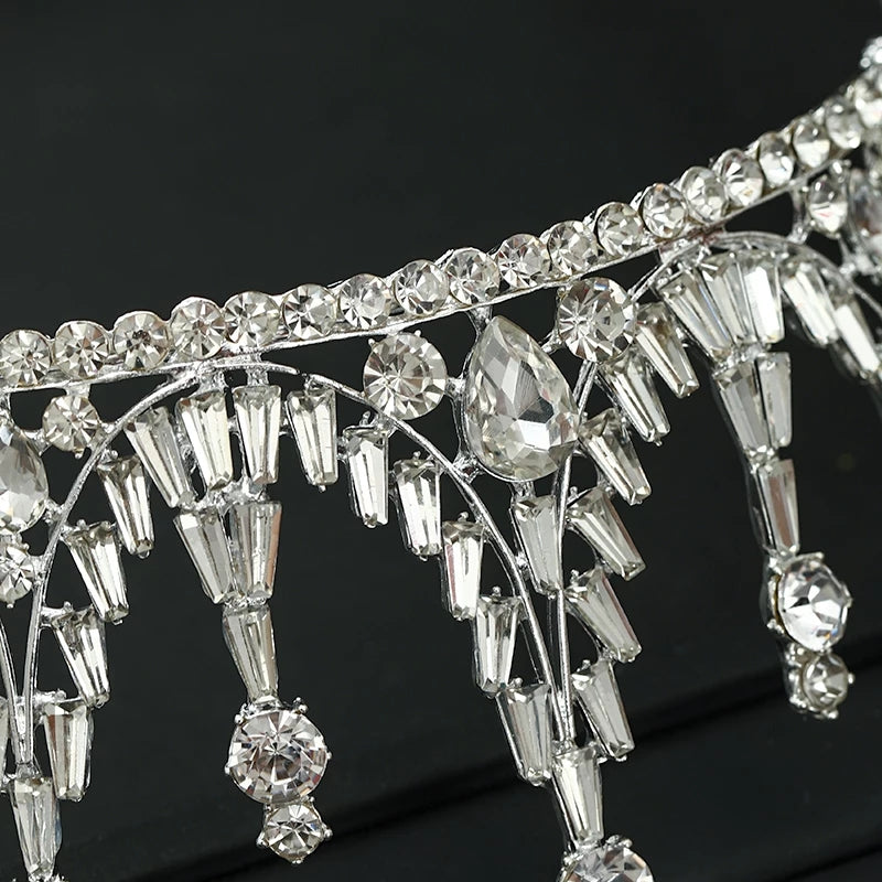 Silver Tiara Crown Detail Princess Queen headdress jewelry bridal Halloween cosplay diadem