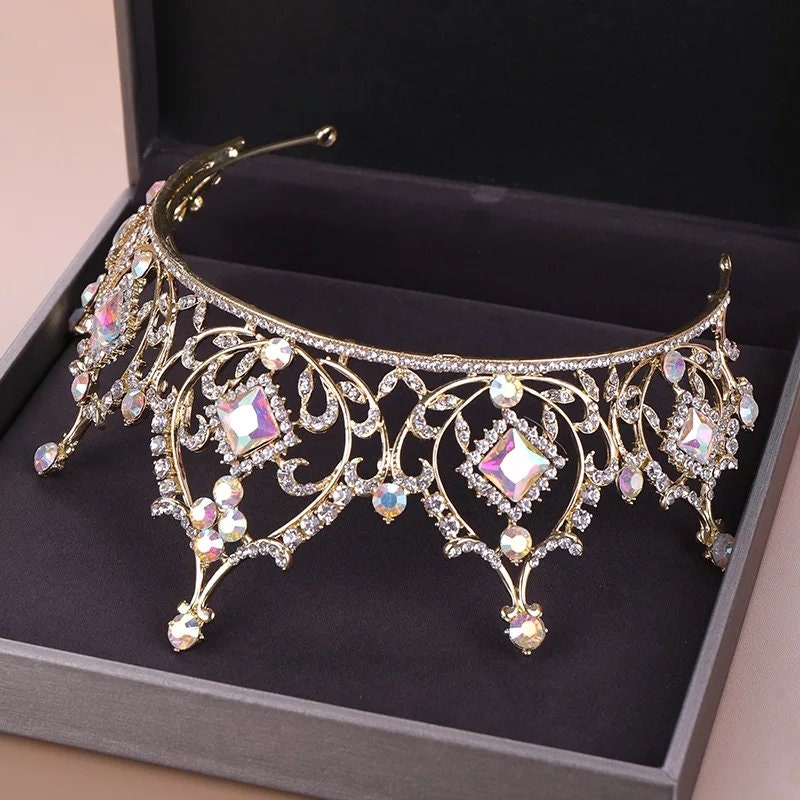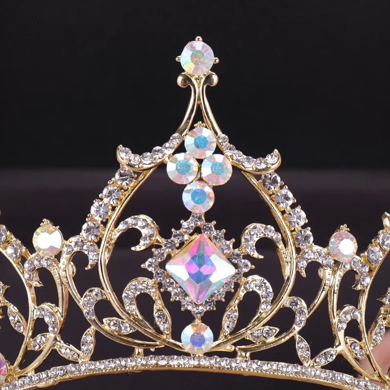 Tall Rose Gold Champagne Tiara Crown Detailed Holographic Princess Queen headdress jewelry