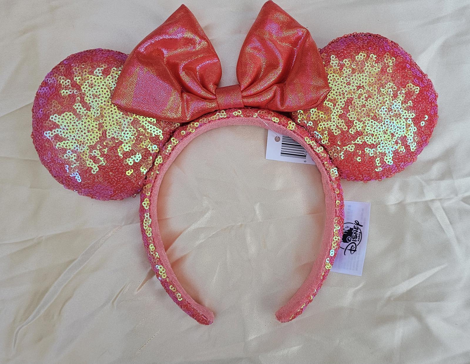 Minnie Ears Disney~ Parks Mickey Mouse Pink orange sequins Plumeria Aulani Hawaii Headband US