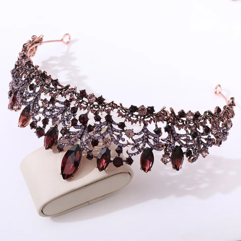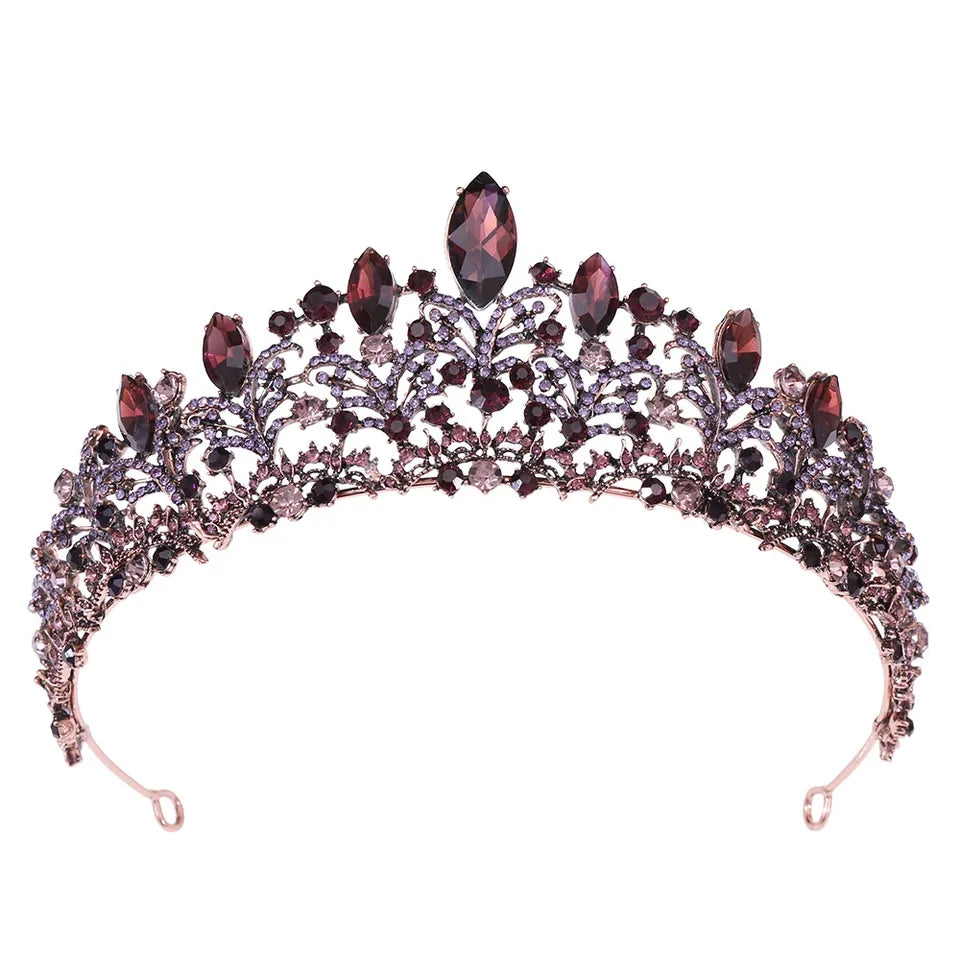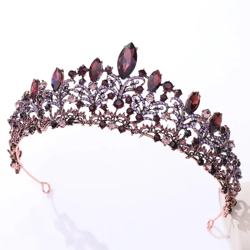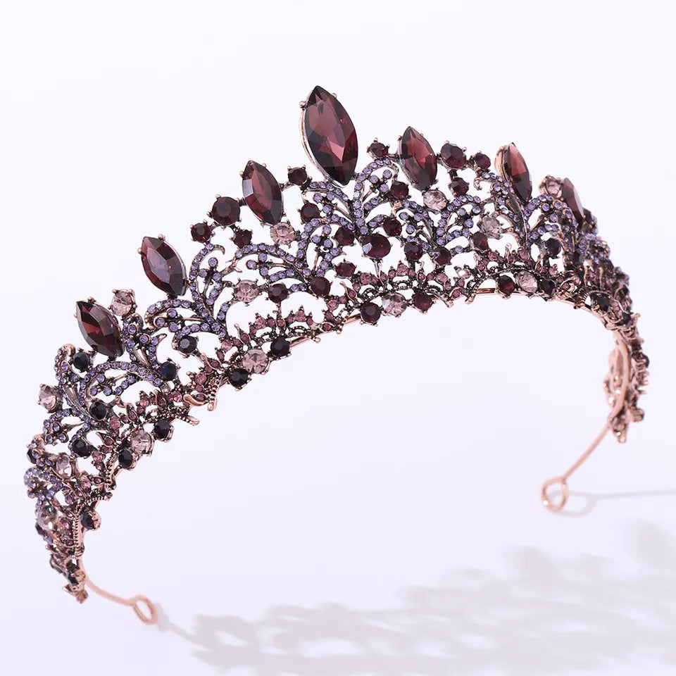Vintage Baroque Tiara Crown – Dark Burgundy Purple Goth Queen Headdress