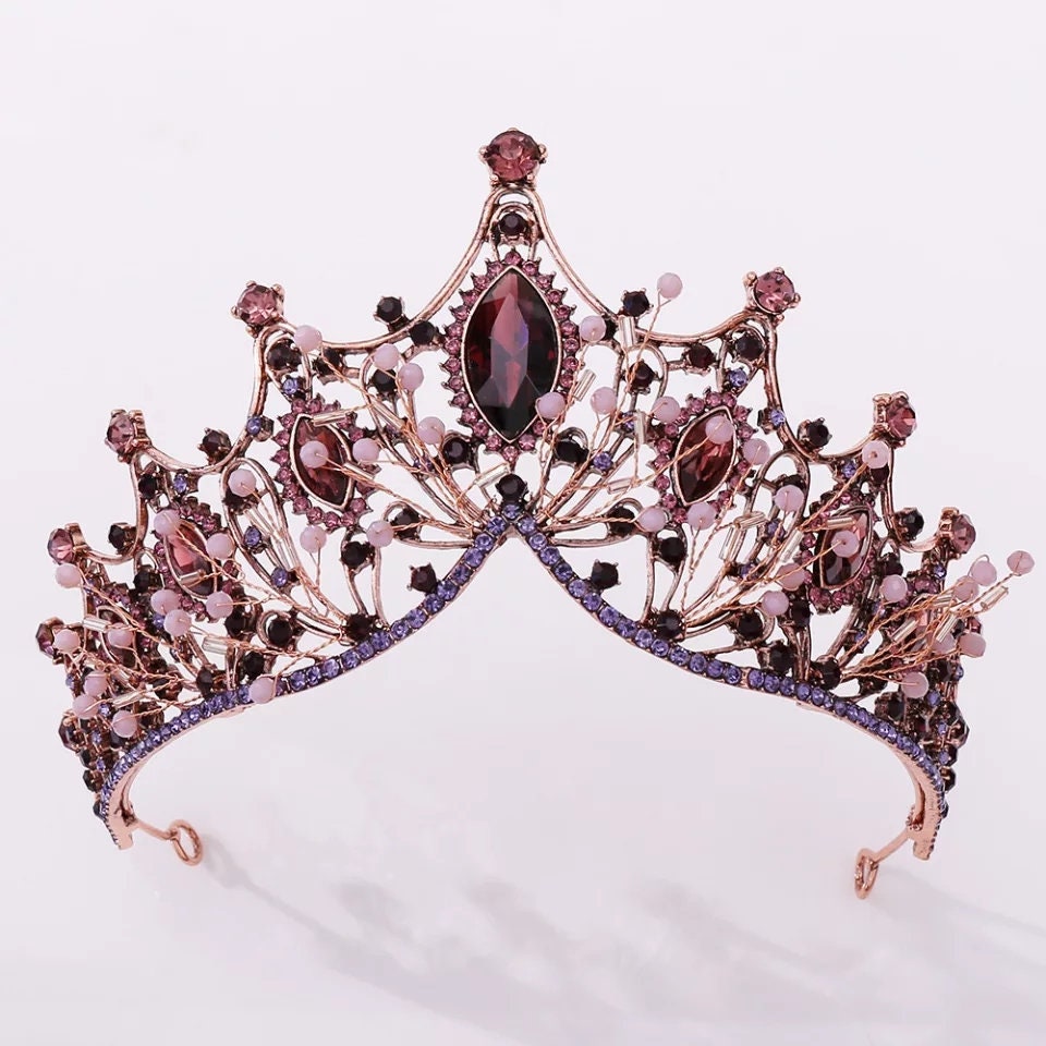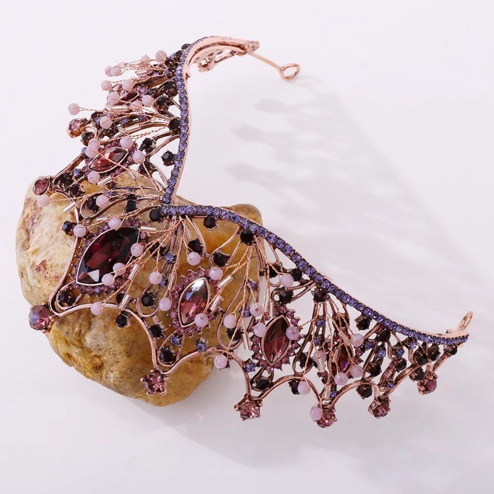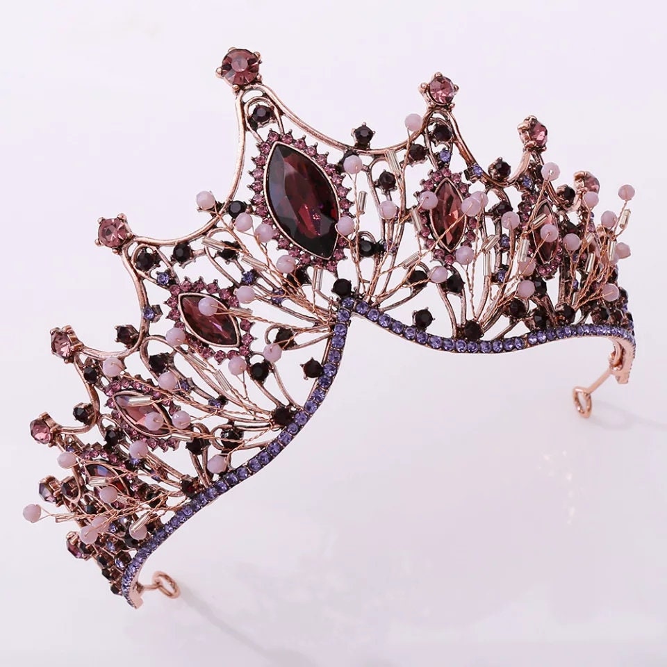 Vintage Baroque Dark Princess Tiara Goth Black Evil Queen tall diadem headdress jewelry bridal Halloween cosplay Wedding pageant royalty.