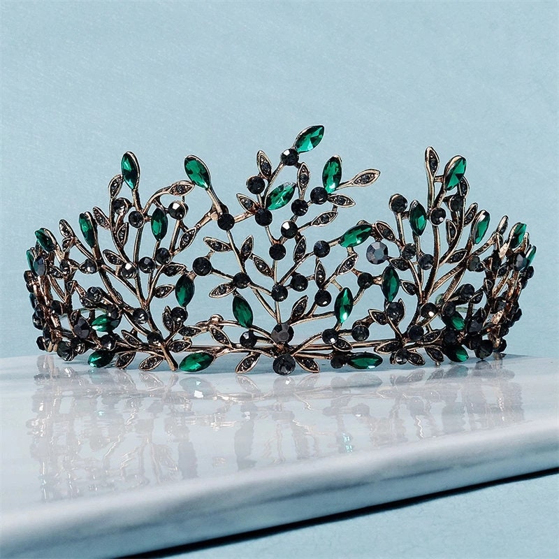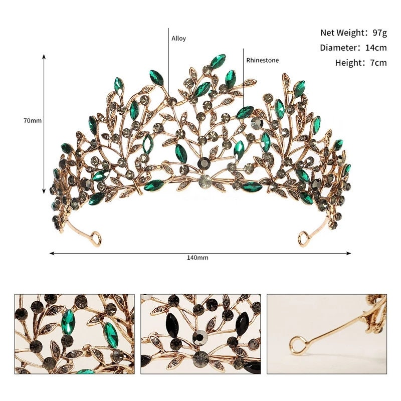 Woodland Baroque leaf crowns and tiaras Princess Queen green dark gray headdress jewelry